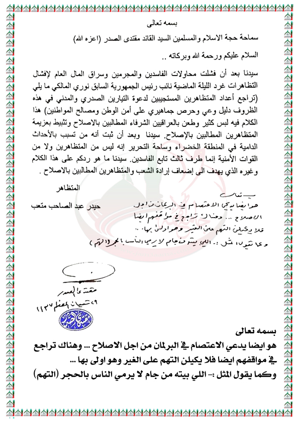 بيانات واستفتاءات السيد القائد مقتدى الصدر نصره الله