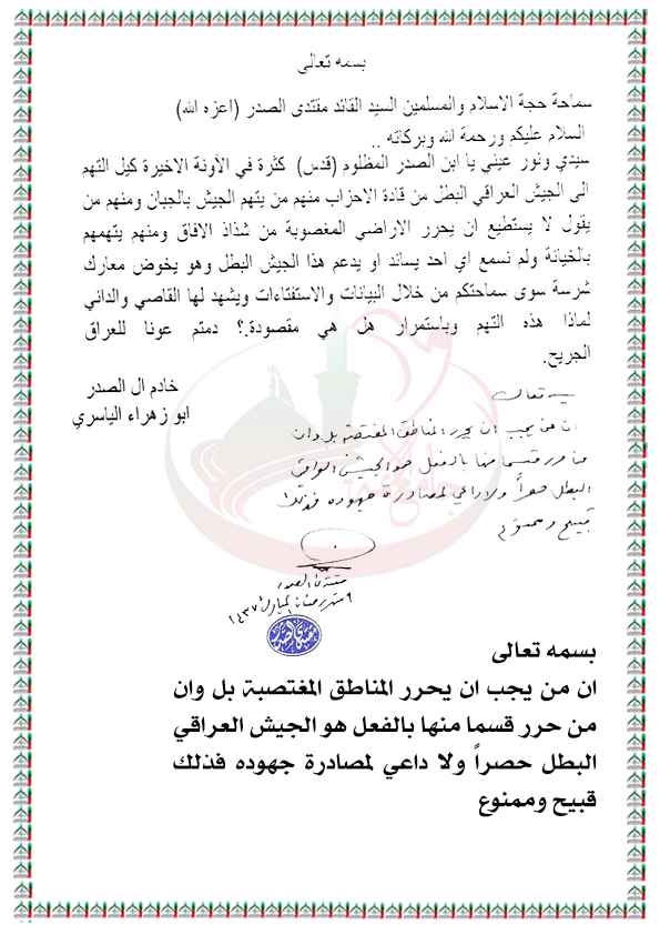 بيانات واستفتاءات السيد القائد مقتدى الصدر نصره الله