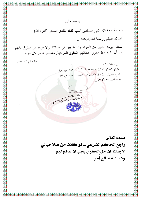 اعطاء الحقوق الشرعية استفتاء السيد القائد مقتدى الصدر اعزه الله 27 / 6 / 2016
