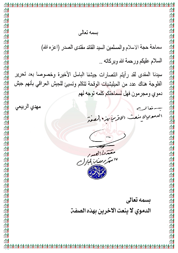 بيانات واستفتاءات السيد القائد مقتدى الصدر نصره الله