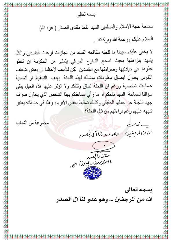 بيانات واستفتاءات السيد القائد مقتدى الصدر نصره الله