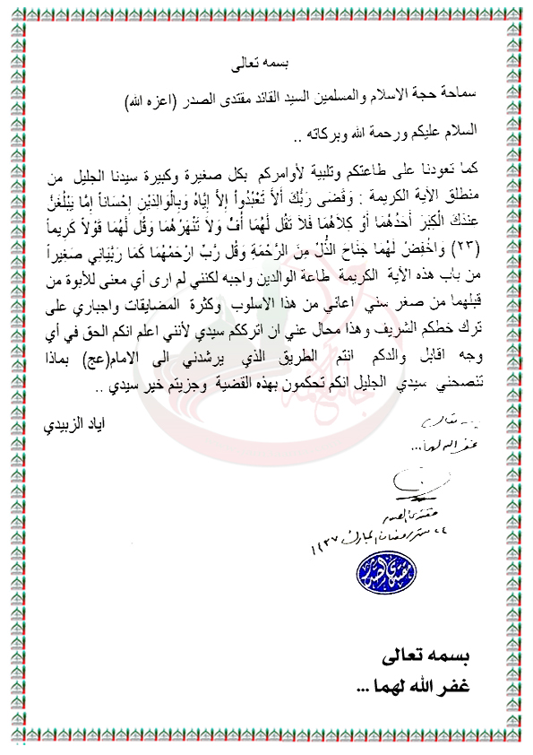 والدان يضايقان ابنهما ويجبرانه على ترك الخط الشريف لسماحته استفتاء السيد القائد مقتدى الصدر اعزه الله 7 / 7 / 2016
