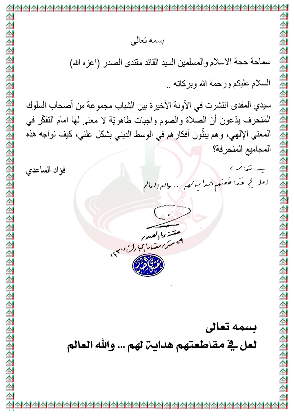 كيفية مواجهة أصحاب السلوك المنحرف استفتاء السيد القائد مقتدى الصدر اعزه الله 10 / 7 / 2016