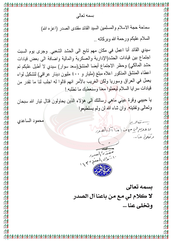 المنشق سعد سوار وتكليفه من البعض بكسب ما يقدر من قيادات سرايا السلام الى صفوفهم استفتاء السيد القائد مقتدى الصدر اعزه الله 17 / 7 / 2016