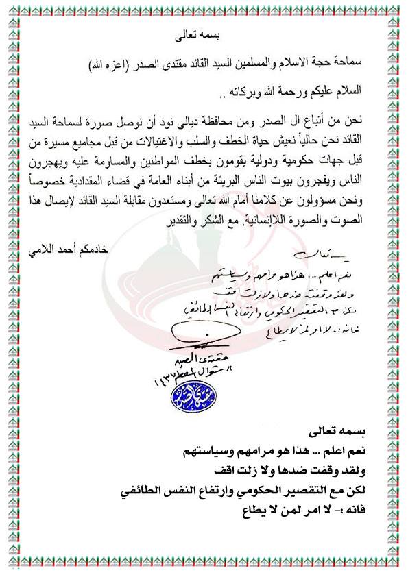 ما يحدث من ممارسات طائفية بحق أبرياء من ابناء العامة في المقدادية بمحافظة ديالى استفتاء السيد القائد مقتدى الصدر اعزه الله 19 / 7 / 2016