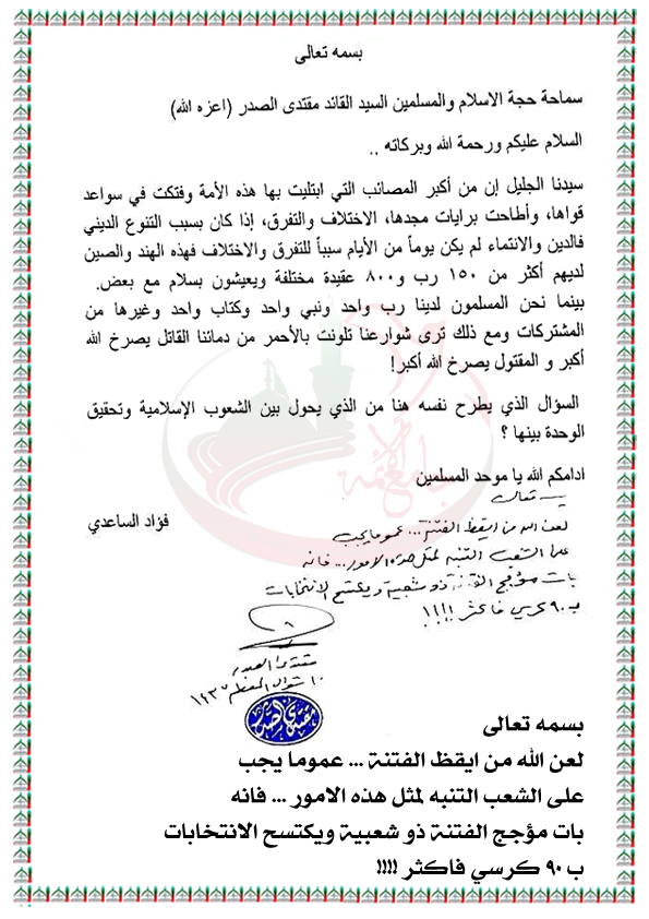 بيانات واستفتاءات السيد القائد مقتدى الصدر نصره الله