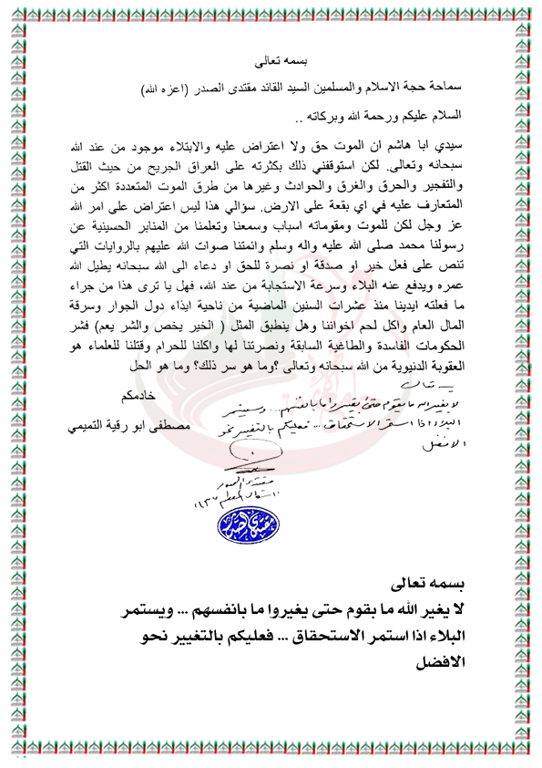 استمرار وتعدد انواع البلاء في العراق استفتاء السيد القائد مقتدى الصدر اعزه الله 19 / 7 / 2016