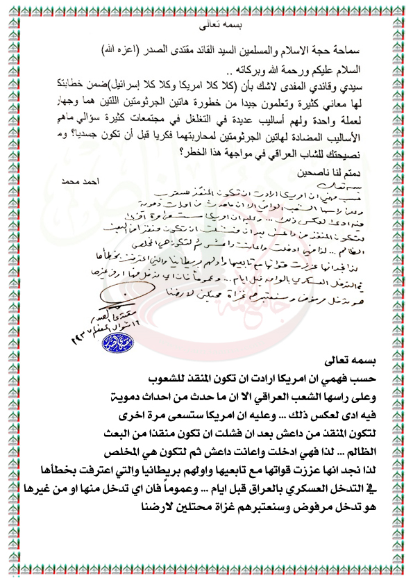 بيانات واستفتاءات السيد القائد مقتدى الصدر نصره الله