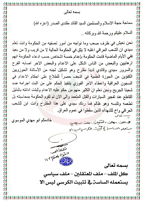 بيانات واستفتاءات السيد القائد مقتدى الصدر نصره الله