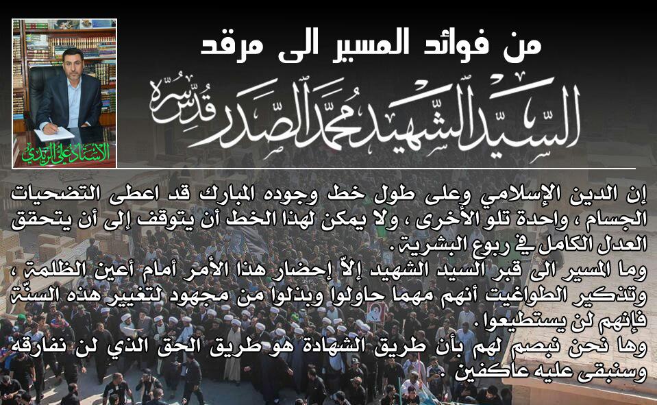 ( فوائد المسير ) من كتاب ( لماذا المسير الى مرقد السيد الشهيد محمد الصدر (قدس )) لمؤلفه الاستاذ الفاضل علي الزيدي ( الفائدة الاولى الفقرة -أ-)