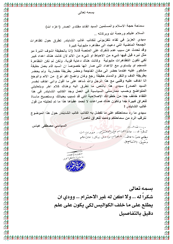 رأي الكاتب غالب الشابندر بخصوص تظاهرات الجمعة التي حضرها سماحته وخوفه عليه بسبب رعايته لثورة الاصلاح استفتاء السيد القائد مقتدى الصدر اعزه الله 28 / 7 / 2016