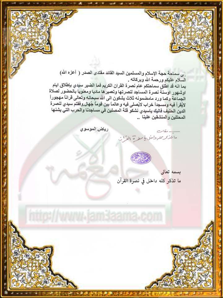 نصرة القران استفتاء سماحة السيد القائد مقتدى الصدر ( اعزه الله ) 14-4-2011