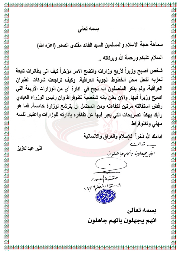 اعلان احد الاشخاص انه تكنوقراط رغم فشله في ادارة عدة وزارات استفتاء السيد القائد مقتدى الصدر اعزه الله 2 / 8 / 2016