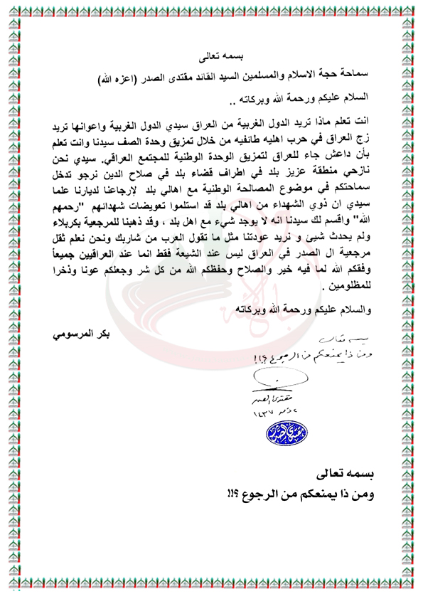 بيانات واستفتاءات السيد القائد مقتدى الصدر نصره الله