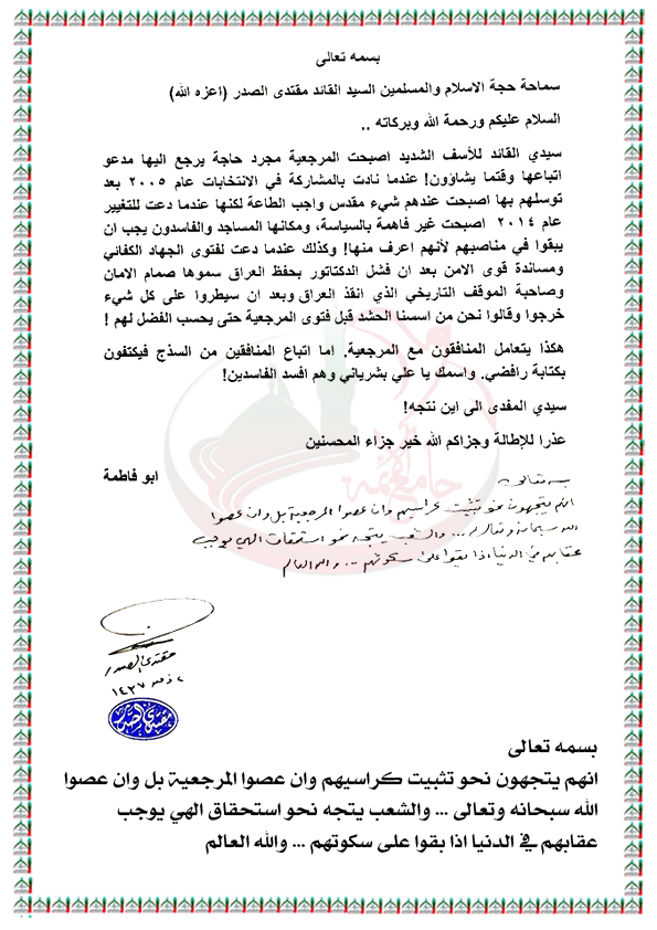 بيانات واستفتاءات السيد القائد مقتدى الصدر نصره الله