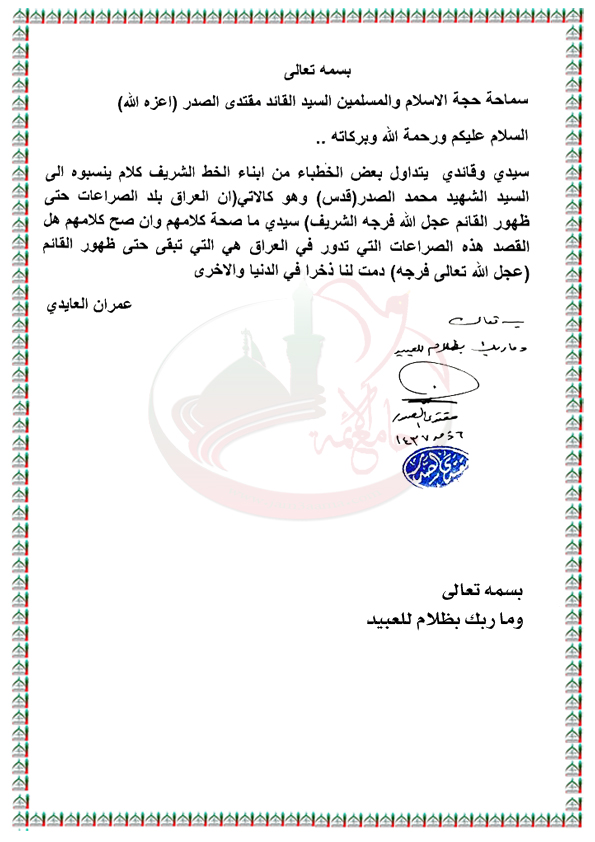 تداول الخطباء لمقولة تنسب للسيد الشهيد محمد الصدر قدس حول الصراعات الدائرة في العراق استفتاء السيد القائد مقتدى الصدر اعزه الله 10 / 8 / 2016