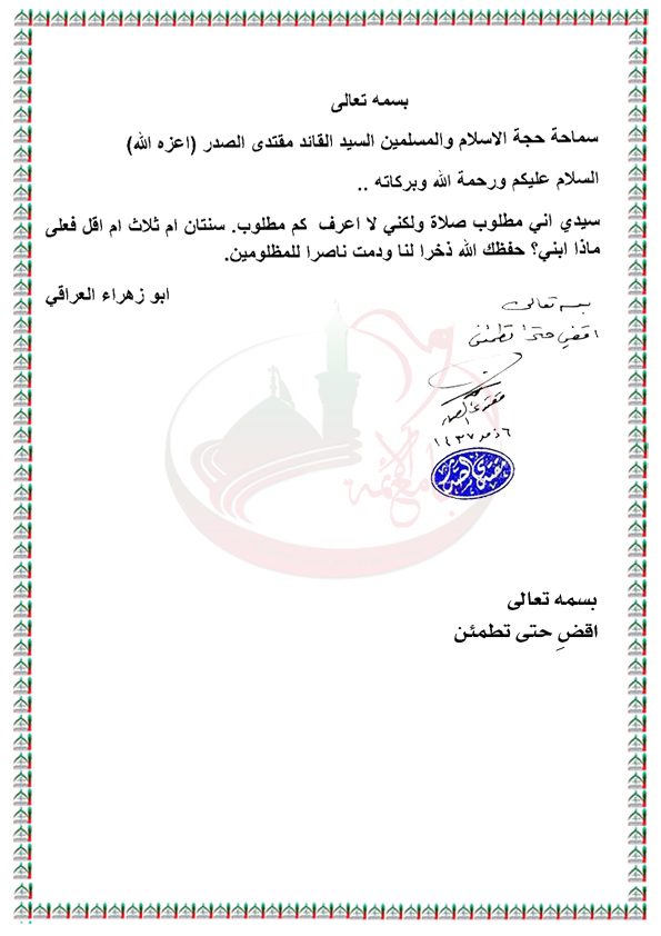 قضاء الصلاة الواجبة للسنوات الماضية استفتاء السيد القائد مقتدى الصدر اعزه الله 11 / 8 / 2016