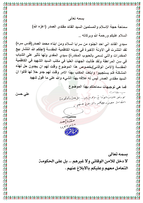 انتشار ظاهرة بيع الحبوب المخدرة استفتاء السيد القائد مقتدى الصدر اعزه الله 12 / 8 / 2016