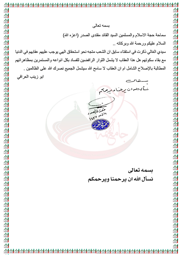 بيانات واستفتاءات السيد القائد مقتدى الصدر نصره الله
