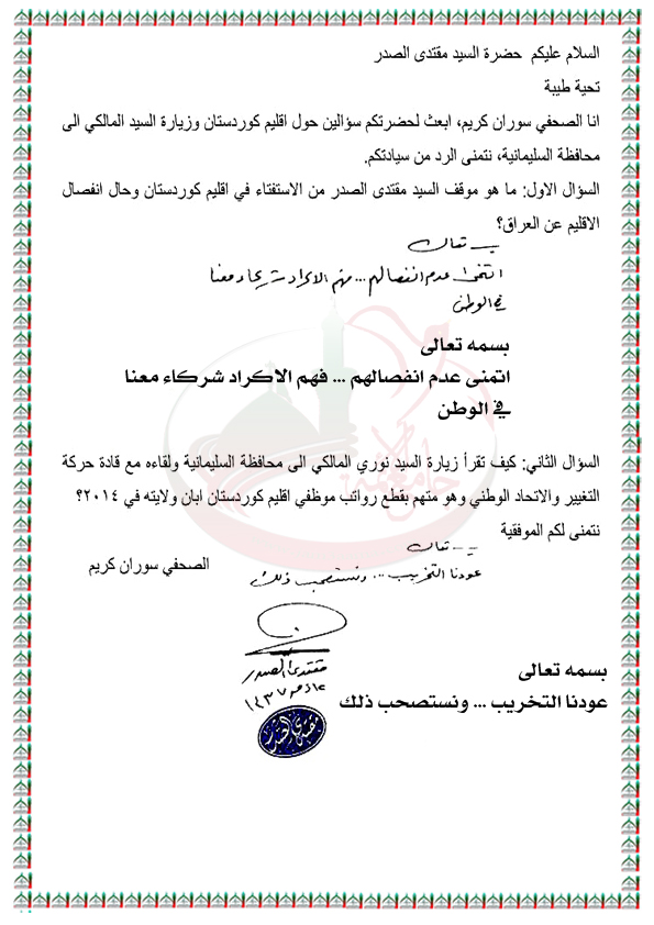 الاستفتاء على انفصال اقليم كردستان عن العراق وزيارة المالكي الاخيرة للإقليم استفتاء السيد القائد مقتدى الصدر اعزه الله 18 / 8 / 2016