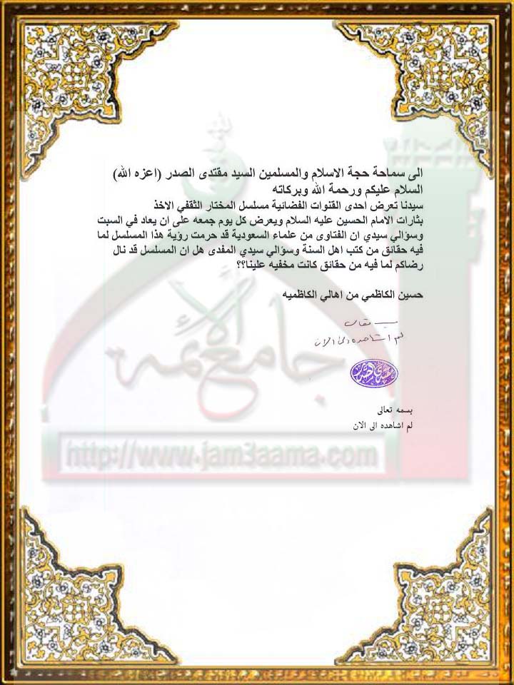 مسلسل المختار الثقفي استفتاء سماحة السيد القائد مقتدى الصدر ( اعزه الله ) 16-4-2011