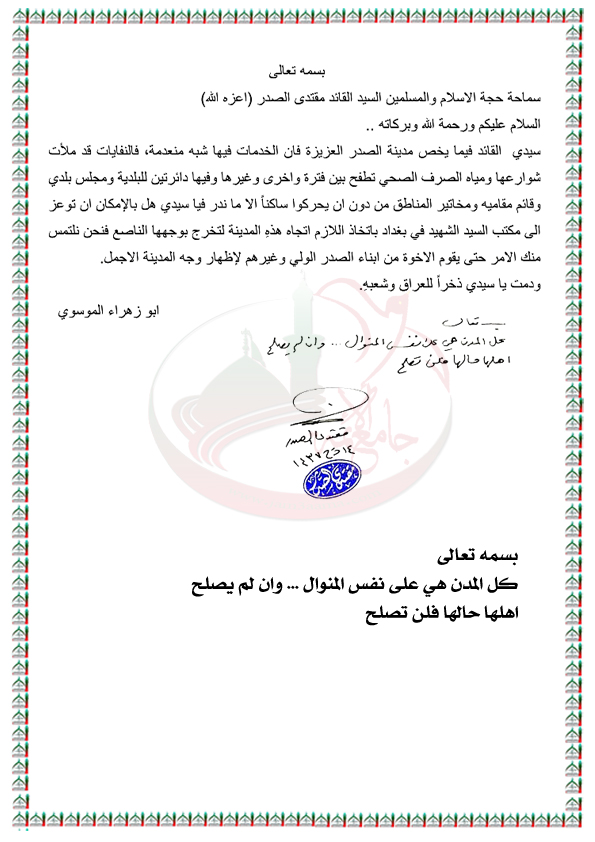 بيانات واستفتاءات السيد القائد مقتدى الصدر نصره الله