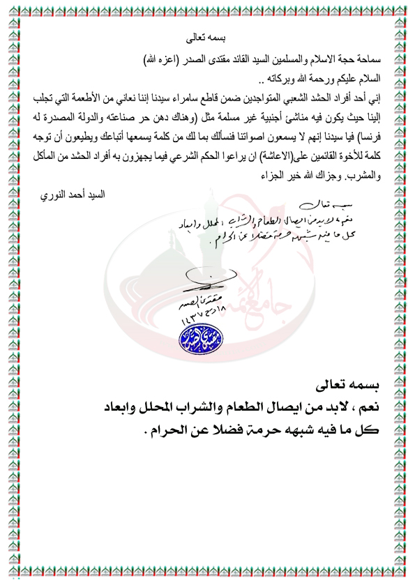 أهمية ايصال الطعام والشراب المحلل للحشد الشعبي وابعاد كل مافيه شبهة وحرمة استفتاء السيد القائد مقتدى الصدر اعزه الله 28 / 9 / 2016
