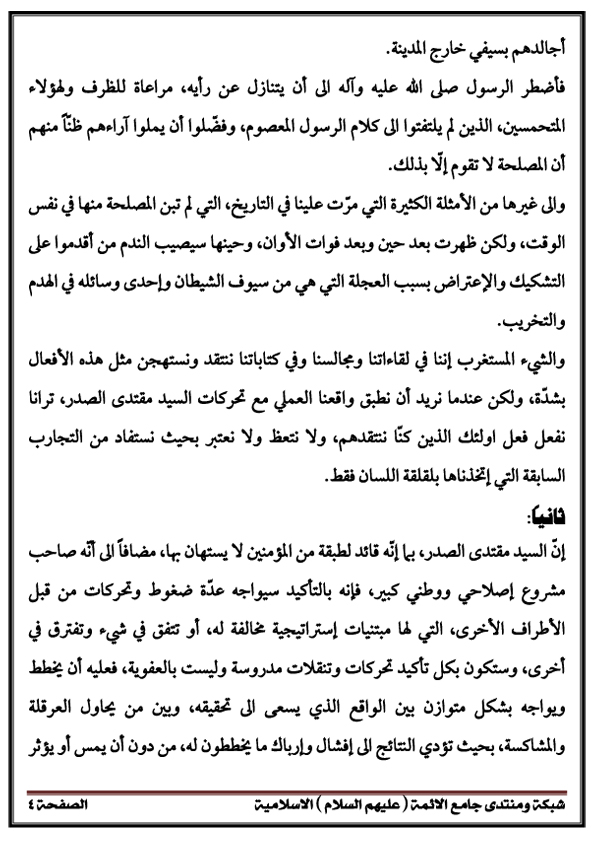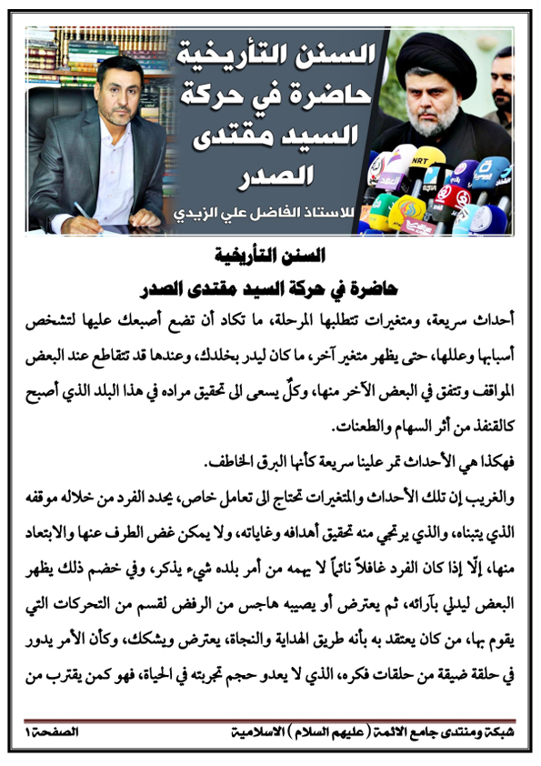 رد: السنن التأريخية حاضرة في حركة السيد مقتدى الصدر / بقلم الاستاذ الفاضل علي الزيدي