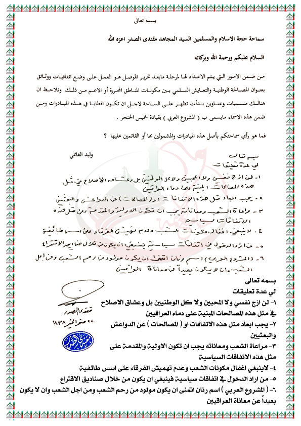 بيانات واستفتاءات السيد القائد مقتدى الصدر نصره الله