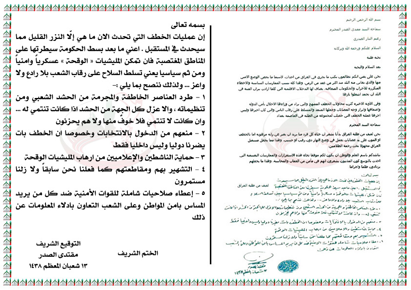 بيانات واستفتاءات السيد القائد مقتدى الصدر نصره الله
