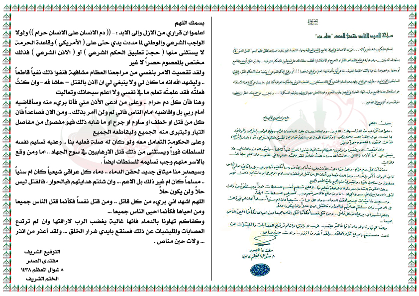بيانات واستفتاءات السيد القائد مقتدى الصدر نصره الله