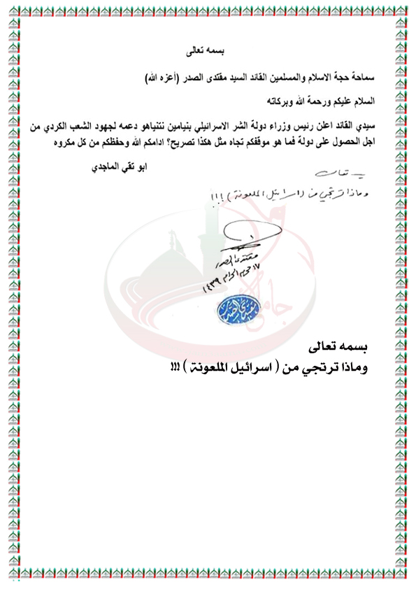 الدعم الاسرائيلي لانفصال كردستان العراق استفتاء الزعيم العراقي السيد مقتدى الصدر اعزه الله 8~10~2017