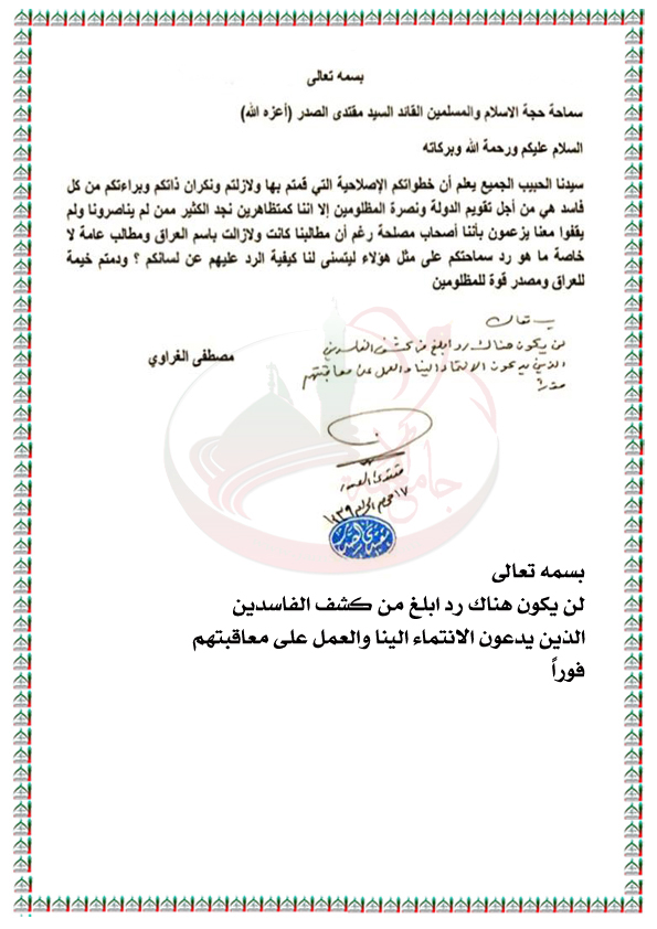 بيانات واستفتاءات السيد القائد مقتدى الصدر نصره الله