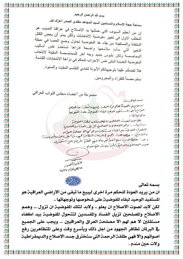 بعض الكتل المتنفذة والمستفيدة من بقاء المفوضية تحاول وضع العصا في عجلة التغيير استفتاء الزعيم العراقي مقتدى الصدر اعزه الله 9 / 10 / 2017