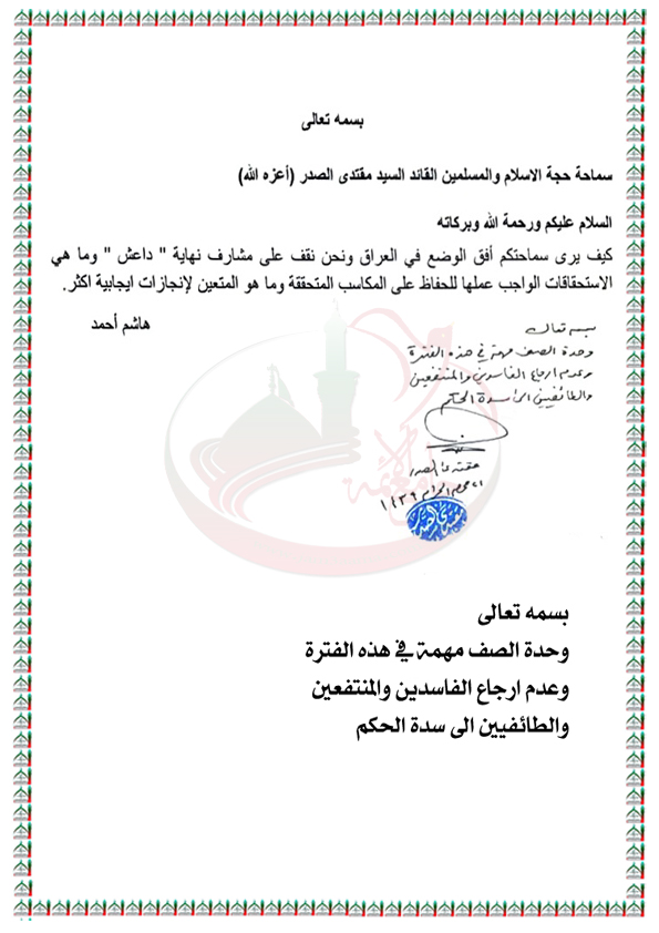 بيانات واستفتاءات السيد القائد مقتدى الصدر نصره الله