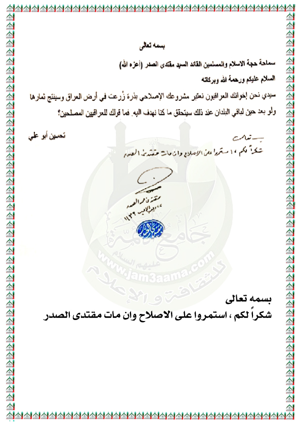 نصيحة سماحته للعراقيين المصلحين استفتاء الزعيم العراقي السيد مقتدى محمد الصدر اعزه الله 9 / 4 / 2018