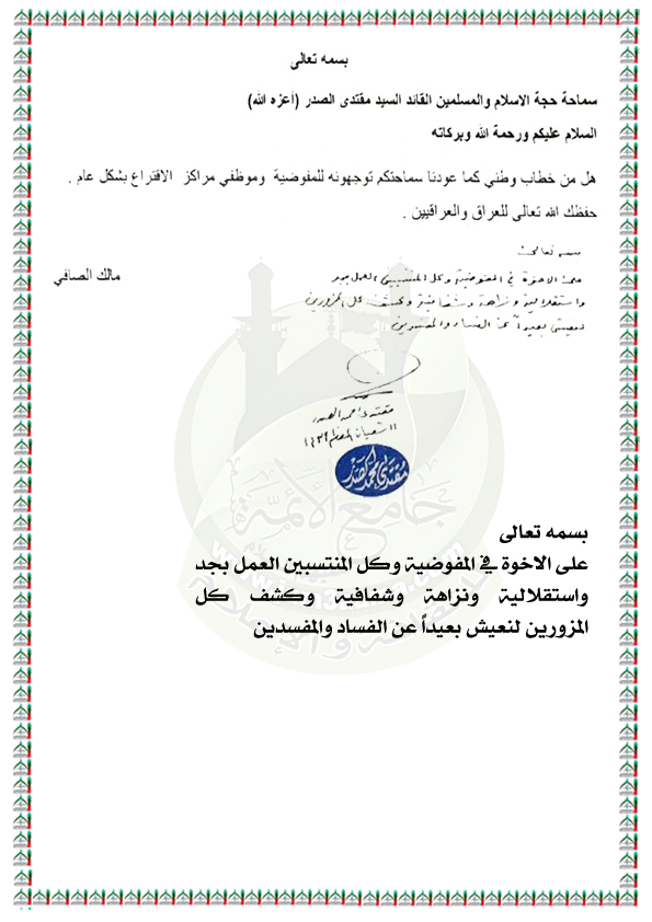 بيانات واستفتاءات السيد القائد مقتدى الصدر نصره الله