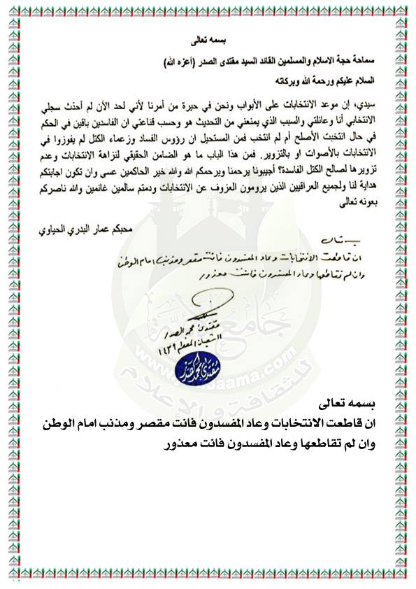 بيانات واستفتاءات السيد القائد مقتدى الصدر نصره الله