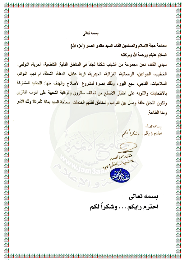 بيانات واستفتاءات السيد القائد مقتدى الصدر نصره الله