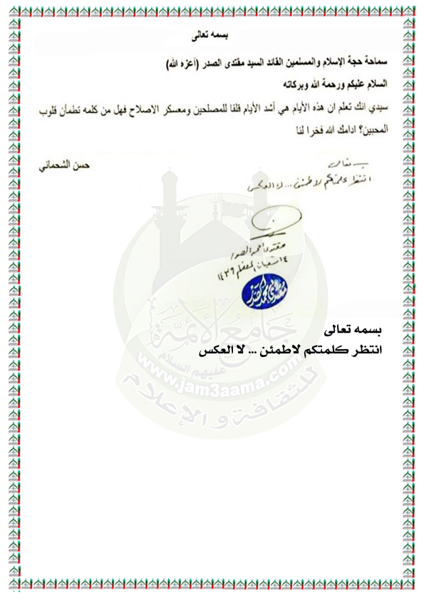انتظر كلمتكم لأطمئن لا العكس استفتاء الزعيم العراقي السيد مقتدى محمد الصدر اعزه الله 1 / 5 / 2018