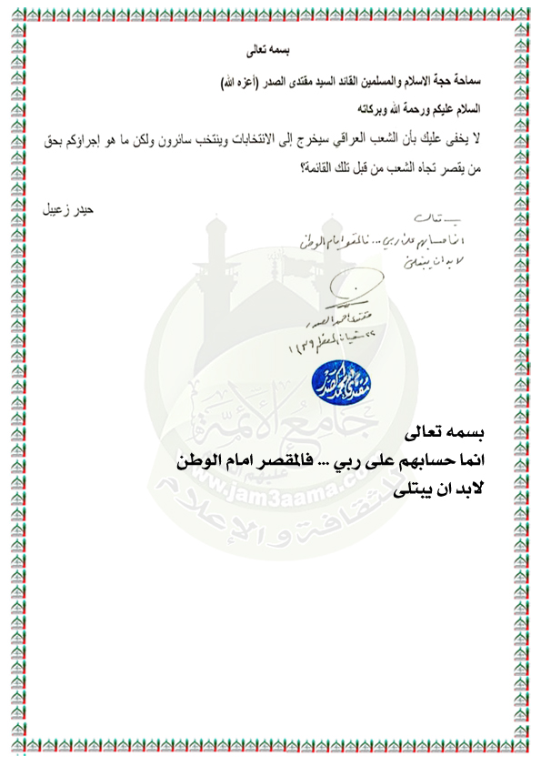 بيانات واستفتاءات السيد القائد مقتدى الصدر نصره الله