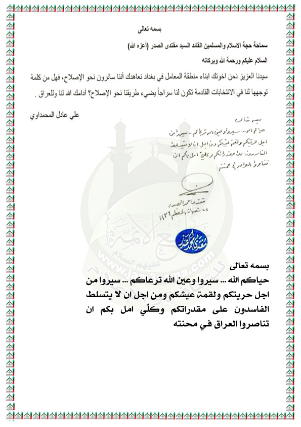بيانات واستفتاءات السيد القائد مقتدى الصدر نصره الله
