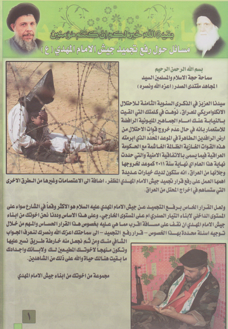 منشور حول مسائل رفع تجميد جيش الإمام المهدي عج