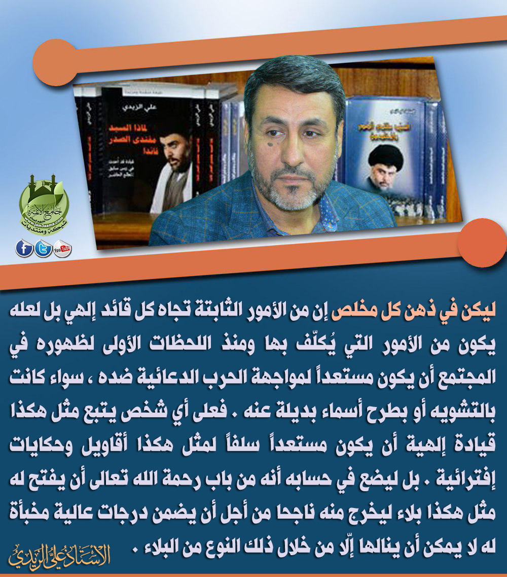 ليكن في ذهن كل مخلص إن من الأمور الثابتة تجاه كل قائد إلهي .. الاستاذ الفاضل علي الزيدي