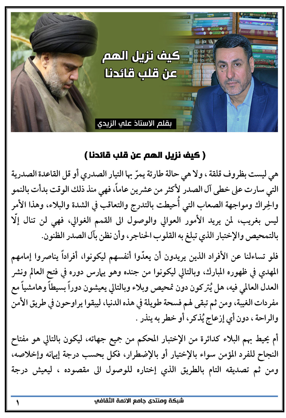 ( كيف نزيل الهم عن قلب قائدنا ) / الباحث والمفكر الاستاذ علي الزيدي