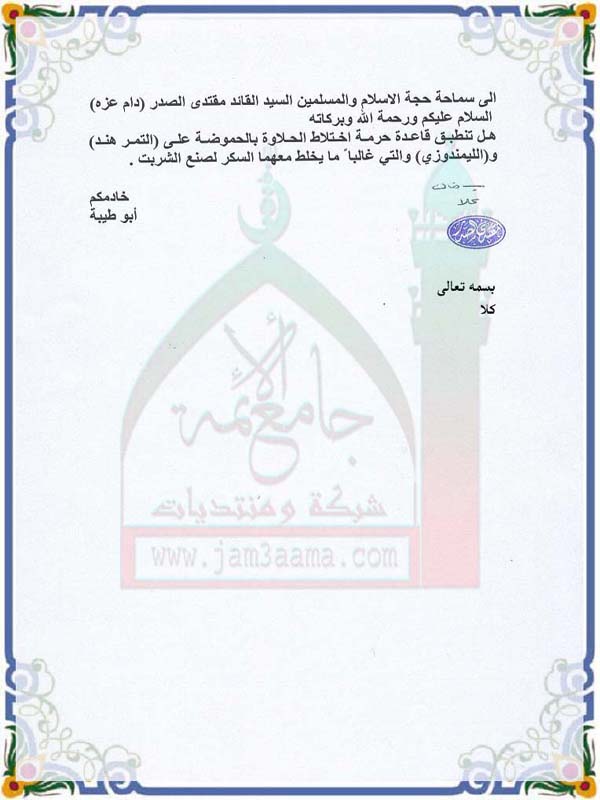 استفتاء للسيد القائد حول حرمة اختلاط الحلاوة بالحموضة بتاريخ 24-11