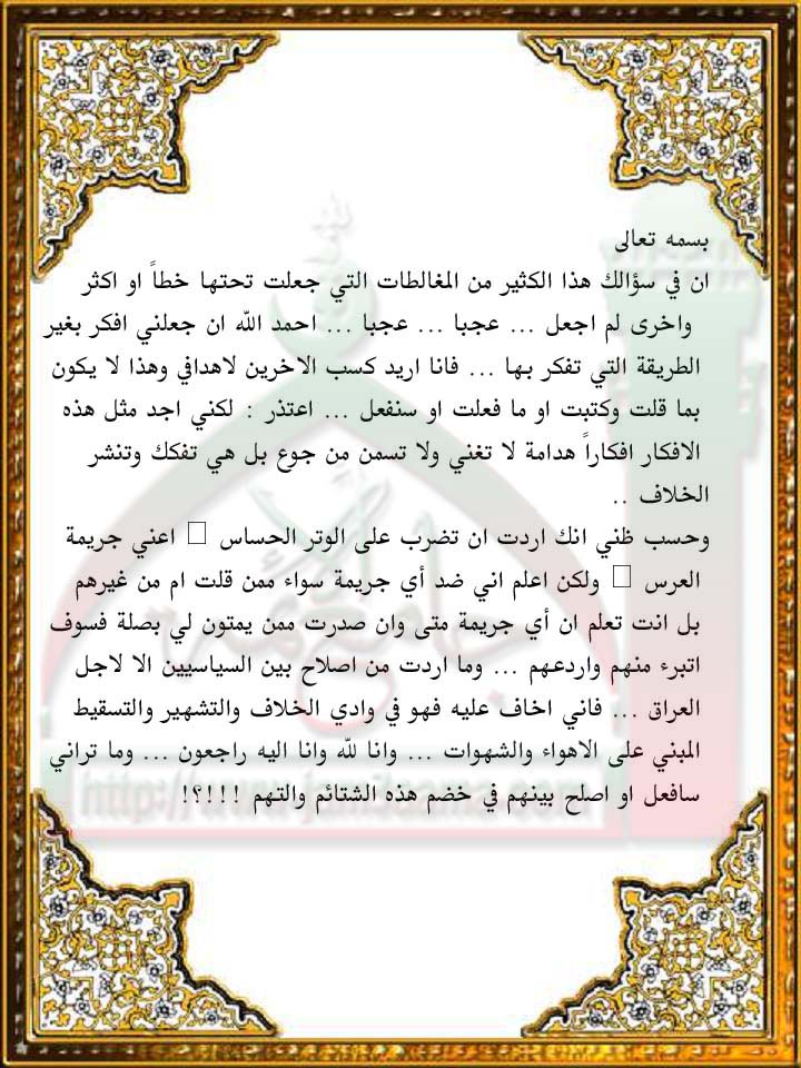 ما اردت من اصلاح بين السياسيين الا لاجل العراق(استفتاء للسيد القائد بتاريخ 14-6-2011)