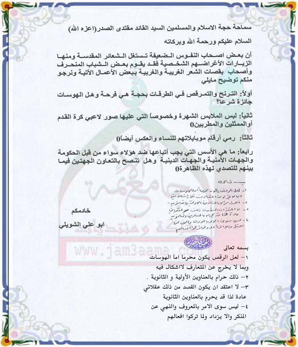استفتاء للسيد القائد حول استغلال الشعائر المقدسة بصورة منحرفة بتاريخ 28-11