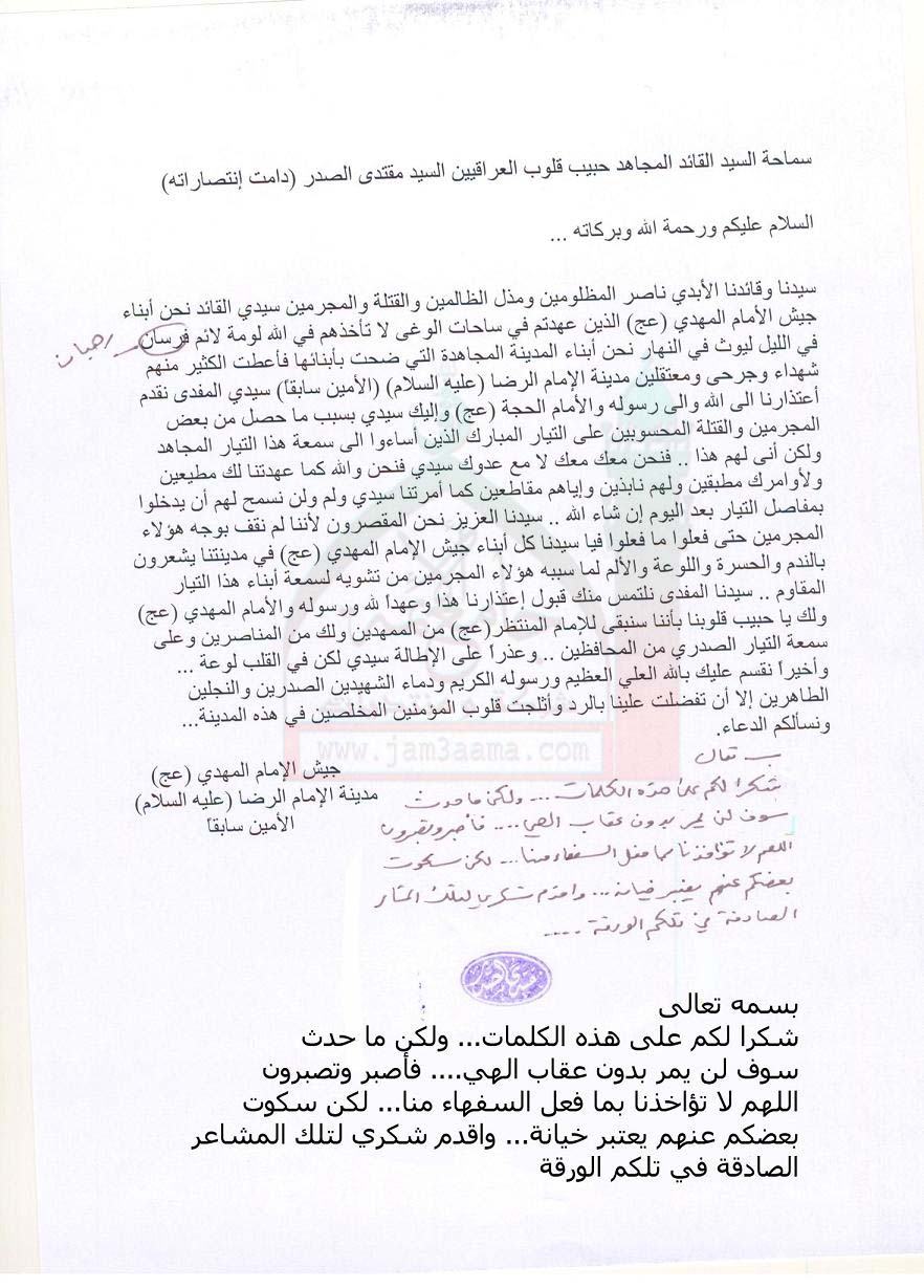 بيانات واستفتاءات السيد القائد مقتدى الصدر نصره الله