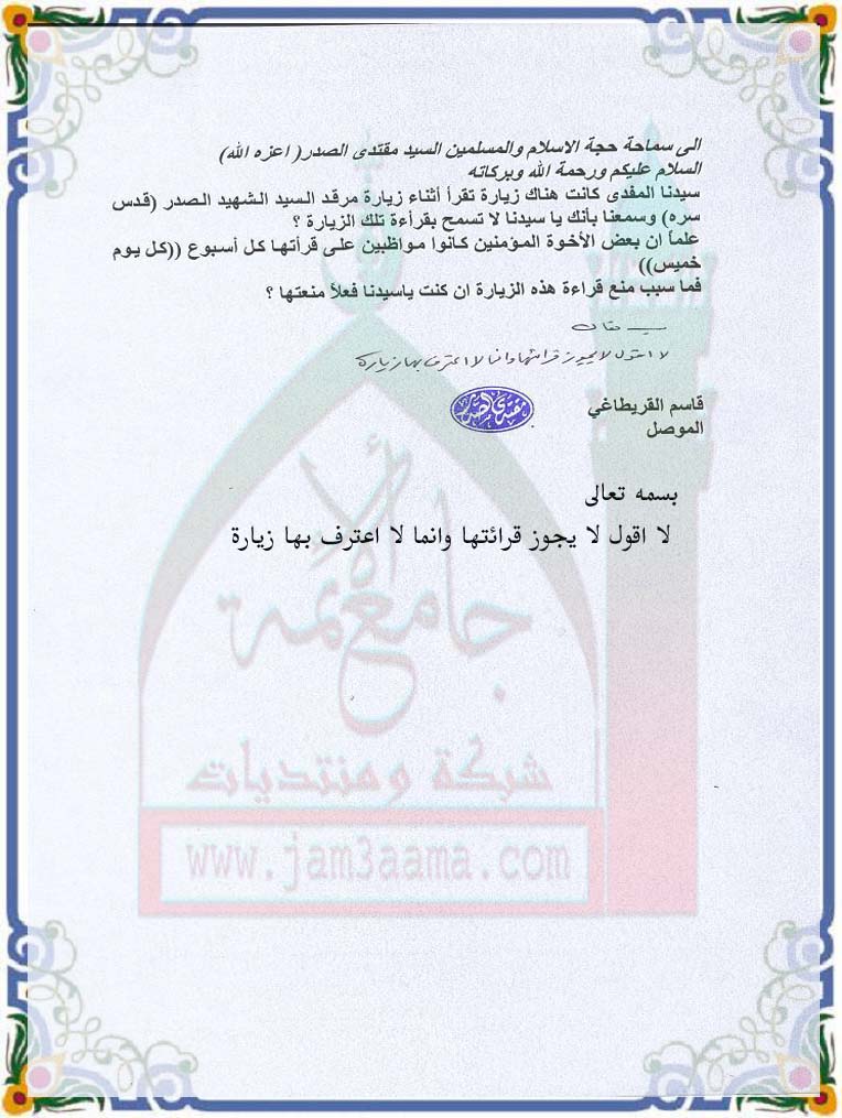 استفتاء للسيد القائد حول قراءة زيارة السيد الشهيد(قد) بتاريخ 8-12-2010